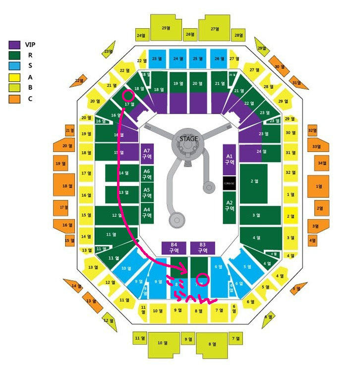 了のプリントアウトとチケット入っていた封筒見せたら理解してもらった?みたいで。最初はメインステージに近い席だったのに、R席からS席に変えられた。
