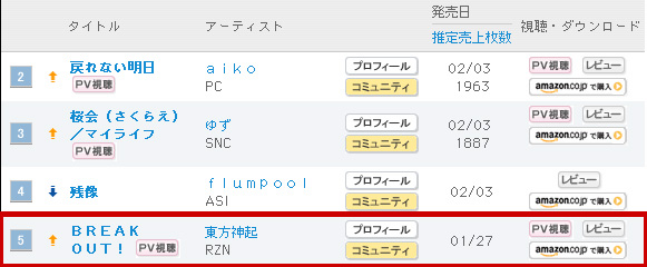 2/8付オリコンランキング↓