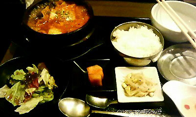 ↑私が頼んだのは豚キムチチゲです。相変わらず写真写りが悪いです。。。