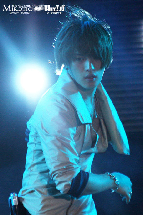 ↓青いライトに当たってるジェジュンさん。この写真ではたわしを当てる人には見えません。笑