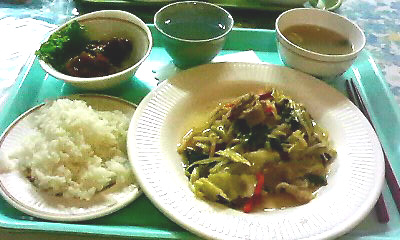 ↑学食は野菜炒め定食Sサイズを頼みました。Sサイズなのにこのボリューム。500円もしなかった。